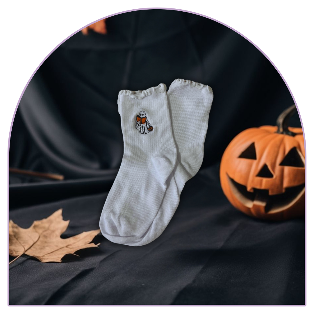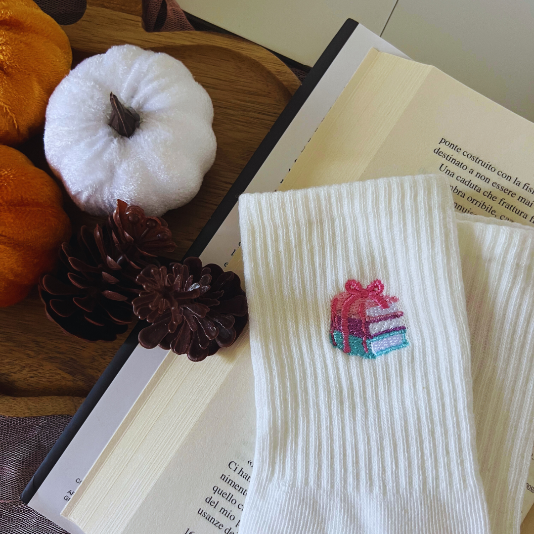 I calzini della collezione Whispers of Autumn sono un dettaglio raffinato per ogni outfit casalingo o da passeggiata. Ricamati con cura, disponibili nei design libri o fantasmino, offrono calore e personalità a chi ama raccontarsi attraverso i piccoli dettagli.