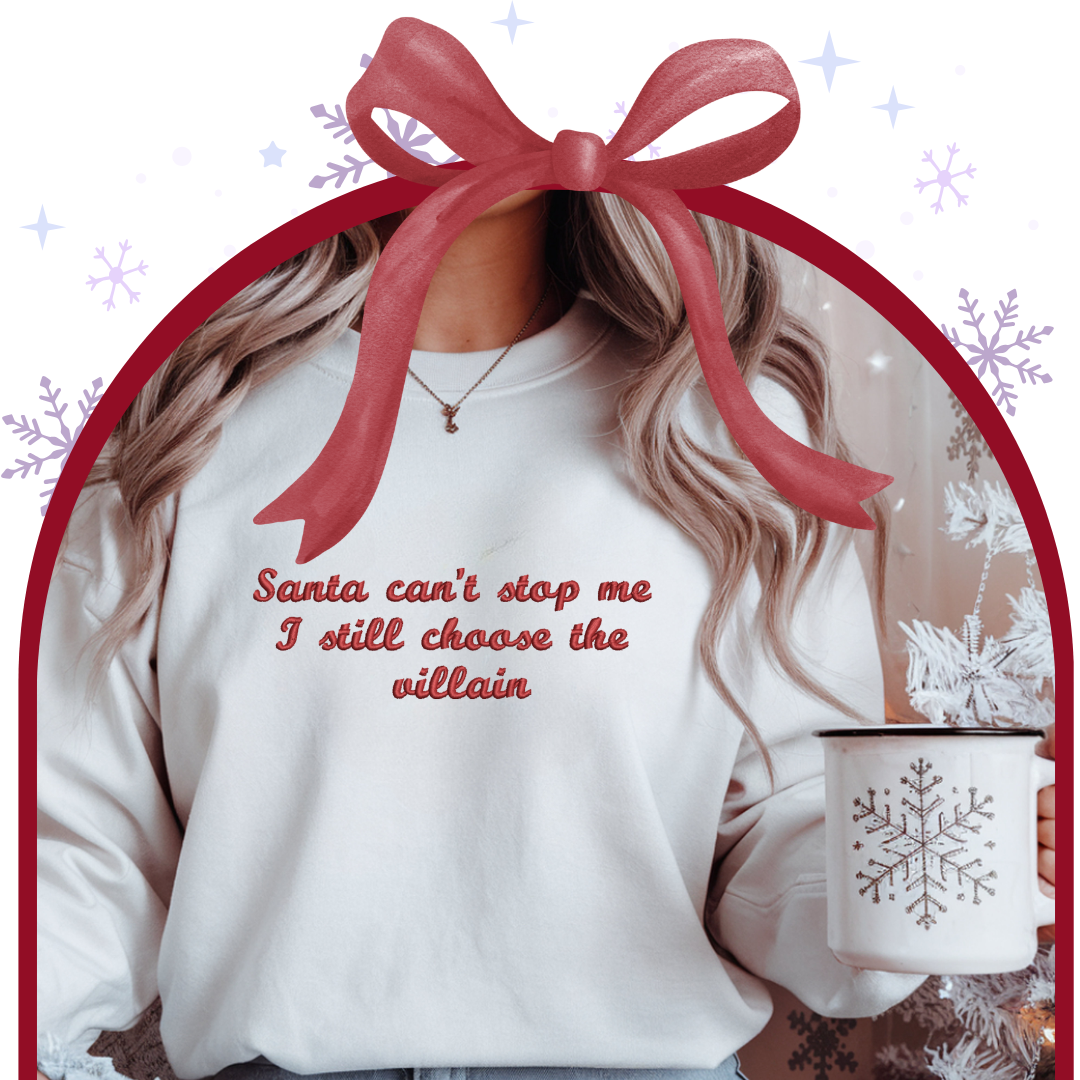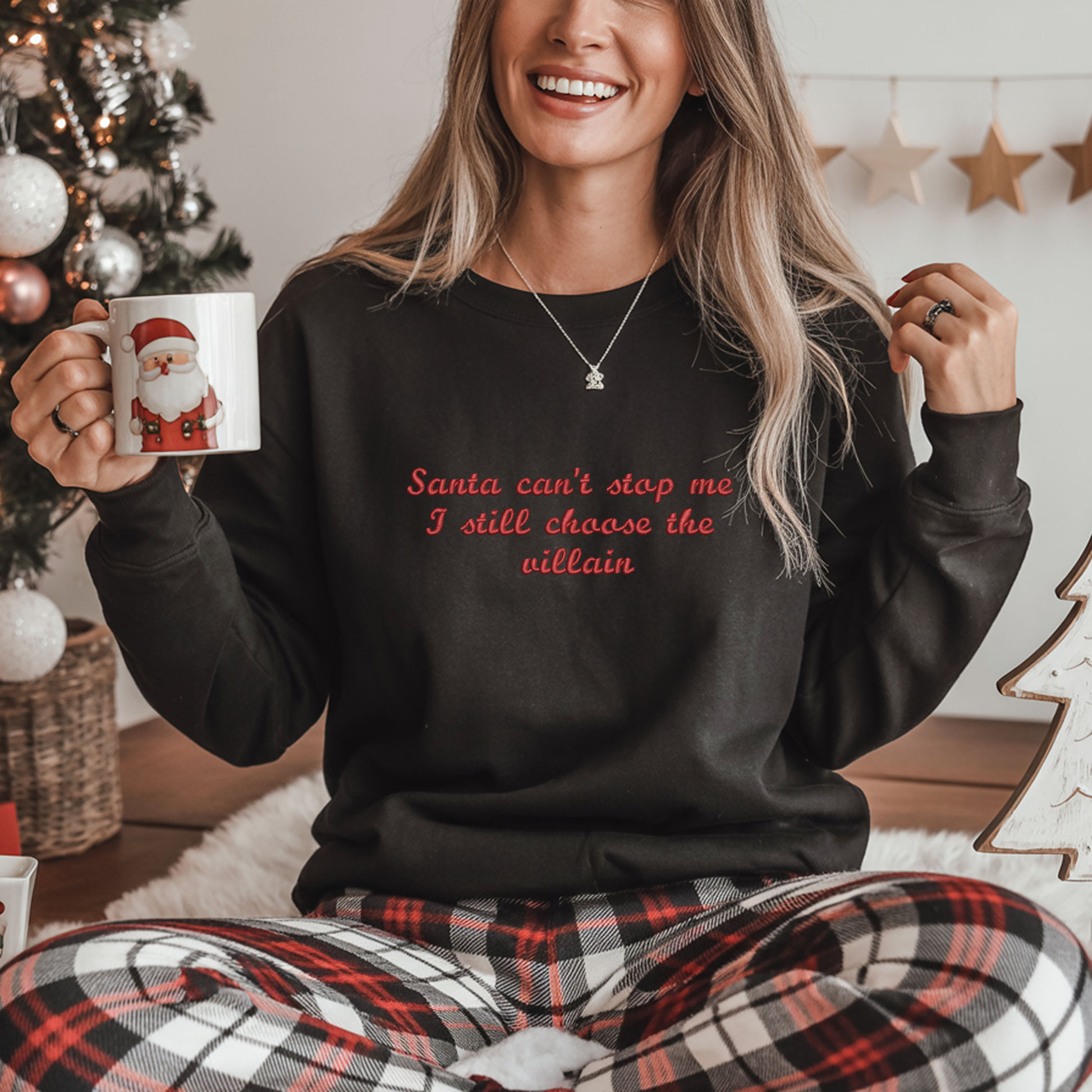 La felpa Santa & Villain è la scelta perfetta per chi vive il Natale tra ironia e fascino.